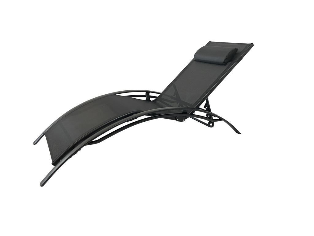 Reposera de aluminio curva con almohadon en apoyacabezas